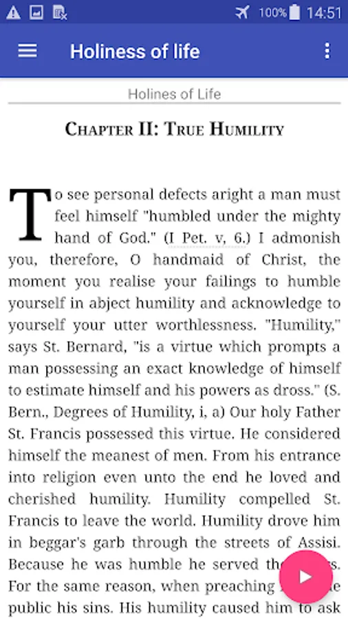 Originally written for women living a monastic life, St. Bonaventure's book on Holiness of Life will appeal to every Christian seeking to advance in spiritual matters. The book starts with a discussion of how achieve self-knowledge and be humble. It then continues with a treatise on how to contemplate on the Passion of Christ and generally how to have a rich prayer life.