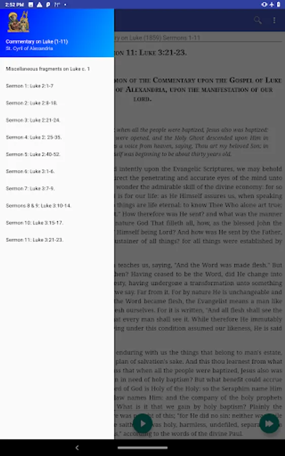 Sermons 1-25 of St. Cyril of Alexandria from the Commentary on Luke (1859) - Luke 1:1-3:6:17) pp.1-101.
