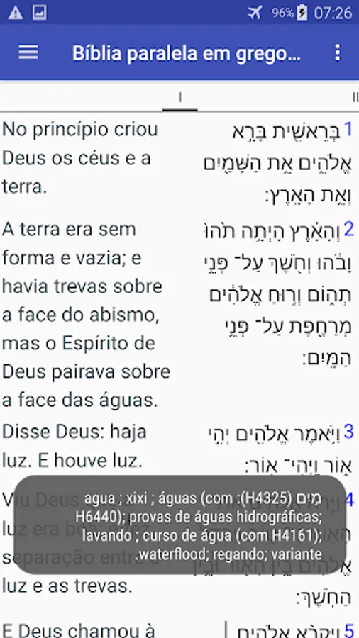 A Greek / Hebrew Bible parallel with dictionary definitions for each word.