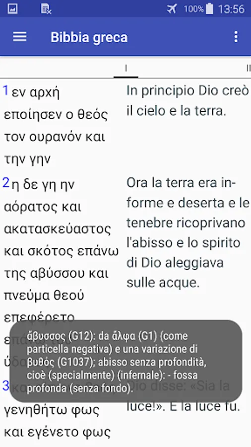 A parallel Greek / Italian Bible. Each Greek word is linked to a dictionary definition. The Italian Bible is: Italian Episcopal Conference.