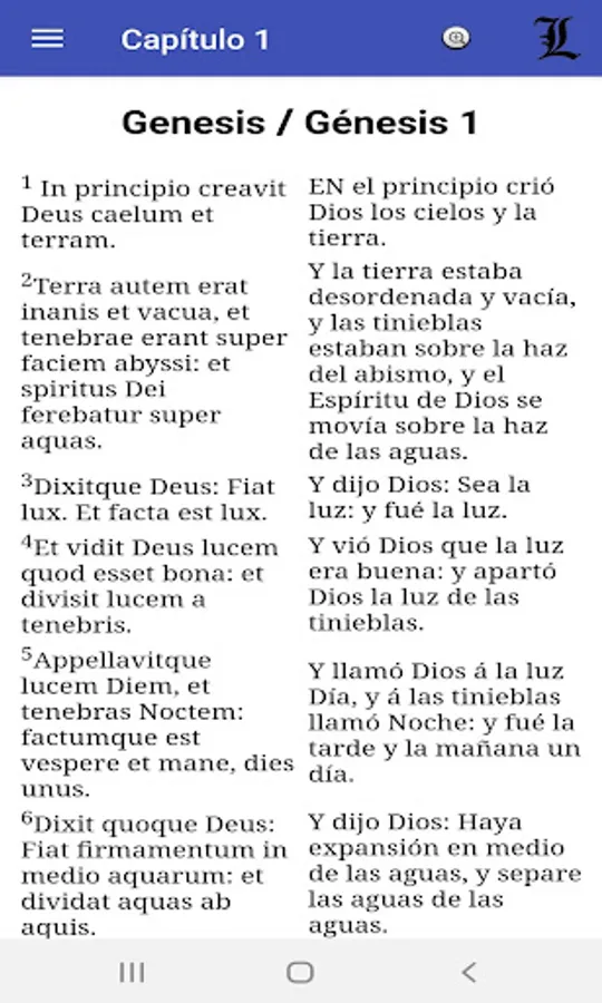 A parallel Latin / Spanish Bible with dictionary definitions for each Latin word.
