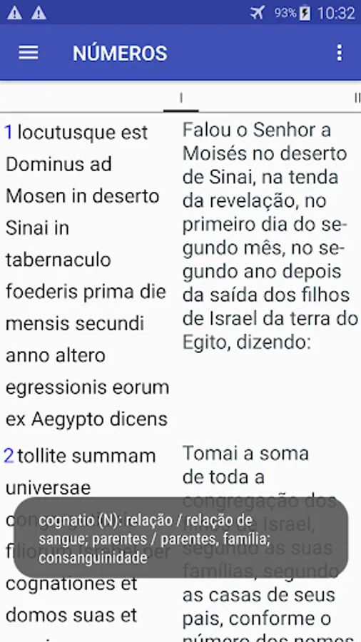 The book displays the Latin text of the vulgate side by side with the translation into Portuguese. Also each Latin word is linked to a dictionary definition.