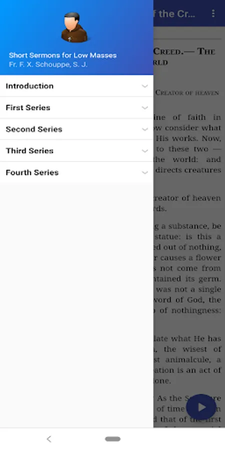 Fr. Schouppe, a Jesuit French priest, put together this present collection of sermons to meet the need for shorter sermons at low masses. They contain a complete and exhaustive explanation of the Apostles' Creed and of all its depending tenets, together with their application to the everyday wants of Christian life and practice. In truth and fact they constitute an epitome of Moral Theology, and of Dogmatic Theology so far as the latter is connected with the Moral.