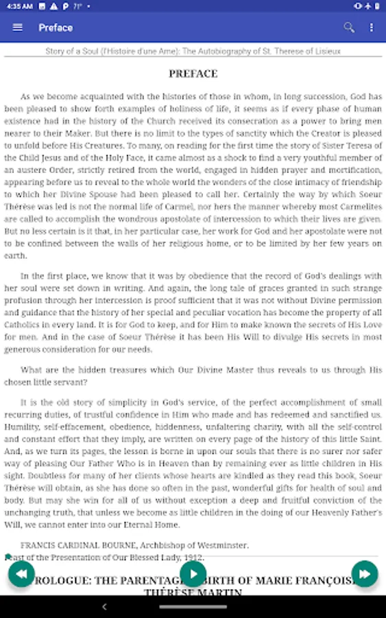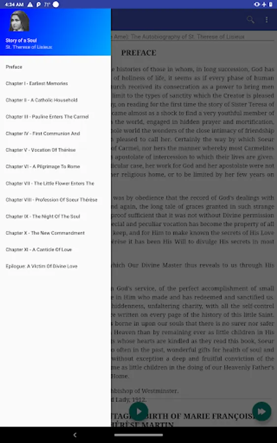 Marie Francoise Therese Martin, known commonly as 'The Little Flower', was born in 1873, in France. She was the youngest of five surviving sisters. When Therese was 3, her mother died. Her father moved his family to Lisieux to be closer to his late wife's brother's family. It was there that Therese's sister, Pauline, entered the Carmel at Lisieux in 1882. There Therese heard the Divine Call to religious life. She entered the Carmel that year, after much oppostion to her entering since she was 15. It was there that she wrote L'Histoire d'une Ame (The Story of a Soul) through obedience. In time, Therese's other sisters entered the religious life, one at Carmel and the other became a Poor Clare. Therese died on September 30, 1897, at the Carmel of Lisieux of tuberculosis. She was canonized in 1925.
