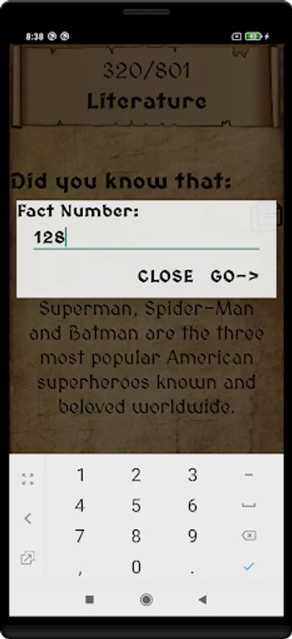 - Shake your phone or click on the screen to see a random fact.