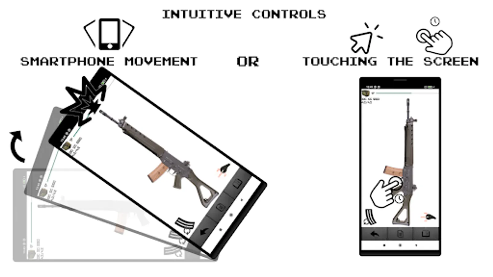 - Hold your finger on the screen to shoot a series from rifle