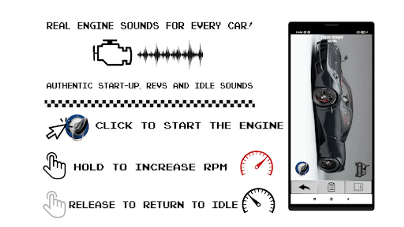 If you are a racing enthusiast, like fast sports cars, their great engines and their sound this app is right for you.