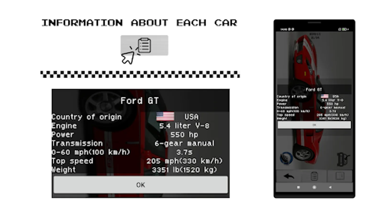 In addition, the application provides information about vehicles such as maximum speed, acceleration, horsepower, and much more.
