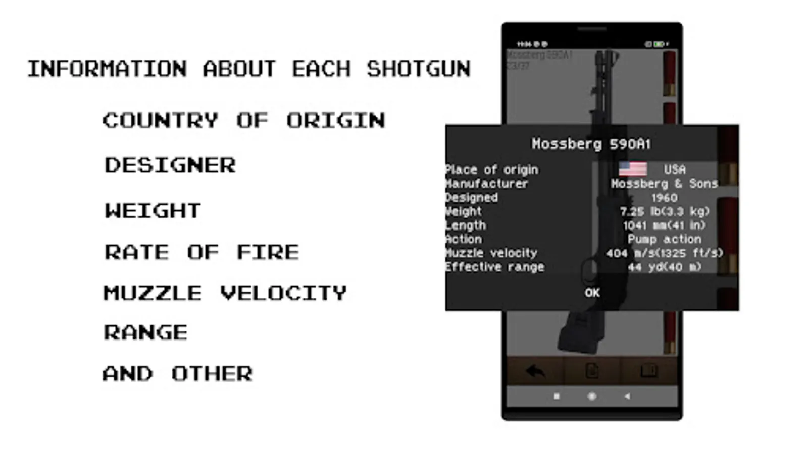 If you are interested in shotguns, weapons, guns, this app is just for you.