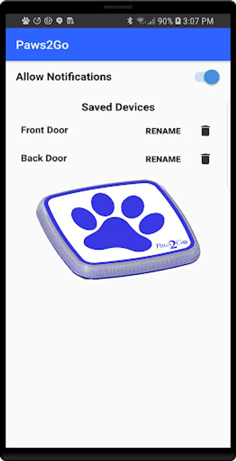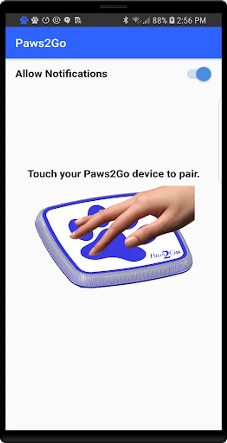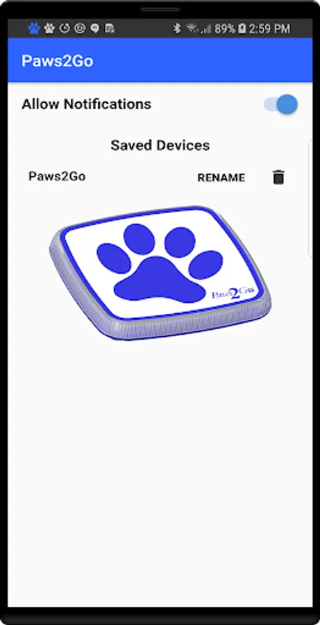 This app will send you notifications when it receives a signal from your Paws2Go device!