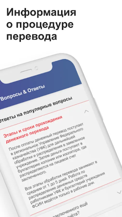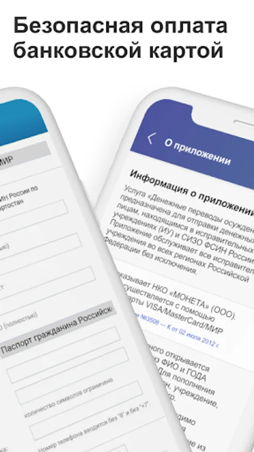 Send funds instantly, directly from your mobile phone using your bank card. To deliver funds, the prisoner will not need to go to the bank, make calls or fill out any paper documents. All translation is done online. It is required to indicate only the name of the correctional institution, full name and year of birth of the recipient.