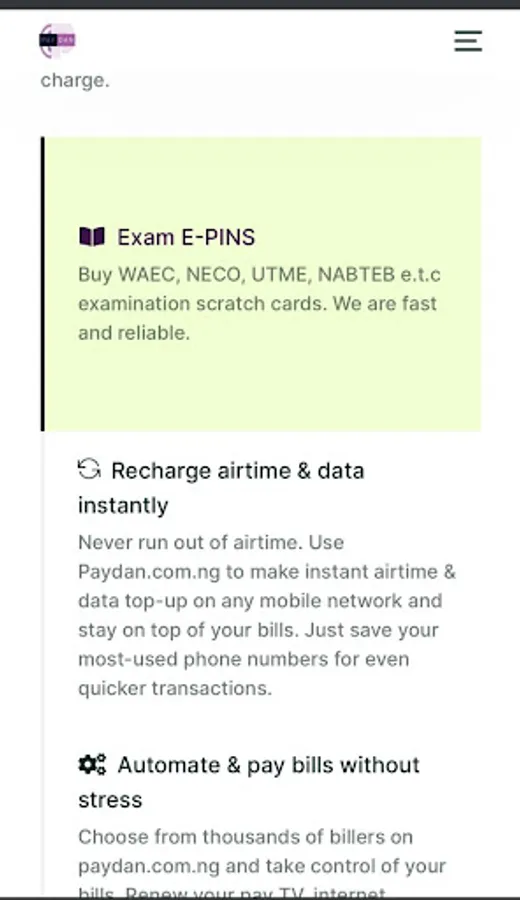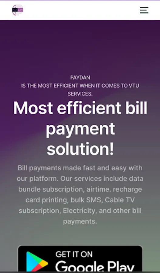 Bill payments made fast and easy with our platform. Our services include data bundle subscription, airtime. recharge card printing, bulk SMS, Cable TV subscription, Electricity, and other bill payments..