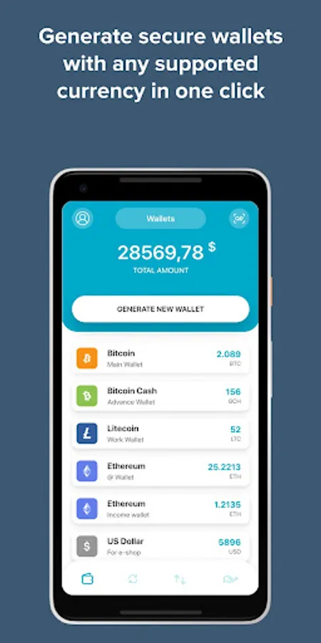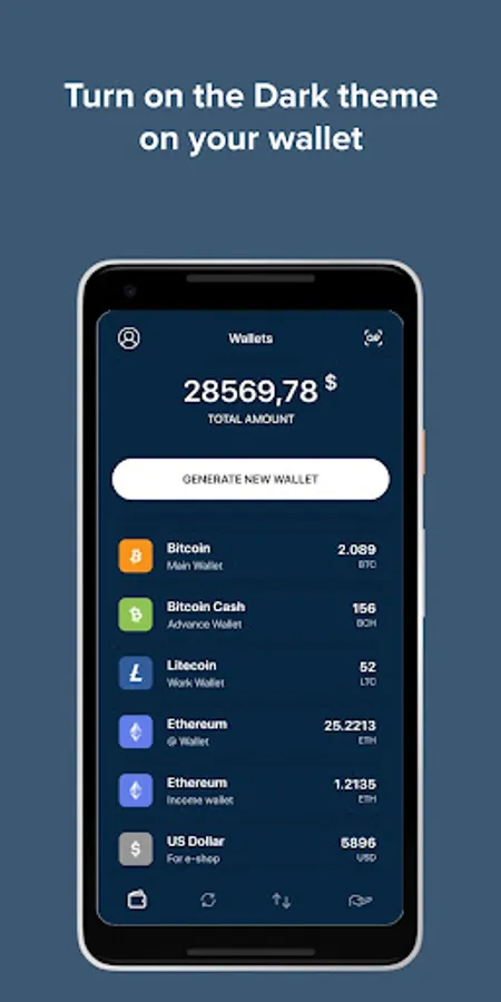 The wallet is the easiest way to buy, sell and exchange many currencies at one place safely. The app supports English, Russian and Ukrainian languages. It is the best both for beginners and mature users!
