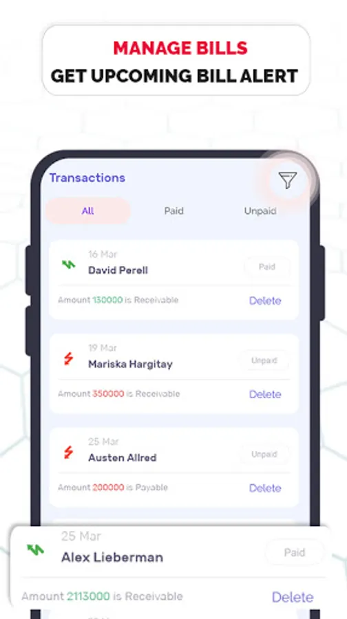 This app can organize your bills as Upcoming, Unpaid, Paid and Overdue based on the due date.Yes. Bill tracker and reminder is full version not a Trial/Demo app. Meet, Bills Reminder – the ultimate payment tracker & money manager. Critically acclaimed as one of the most complete money manager & expense tracker apps, TimelyBills makes it easy to track your daily expenses, pay bills on time, stay within budget and save more every month. Track bill due date reminder to your spending, organize bills and subscriptions, get reminders, and more. The idea behind Easy Bills Reminder is to allow you to keep an eye on your bills by sending daily payment reminder notifications on your device. Bills reminder & payments allows you to access all your bills in easy manner.