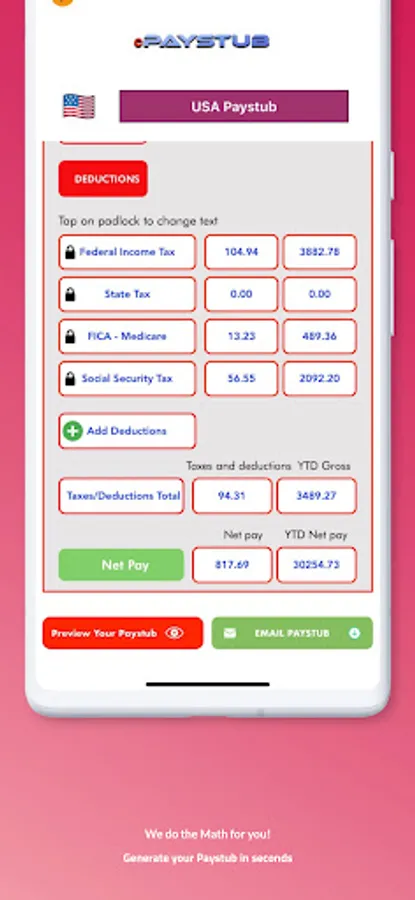 Enter your information into the spaces below to start creating your PayStub, our template will take care of all math and calculations making it easier for you. Once finished, you can preview your stub