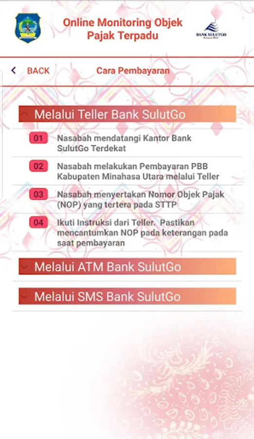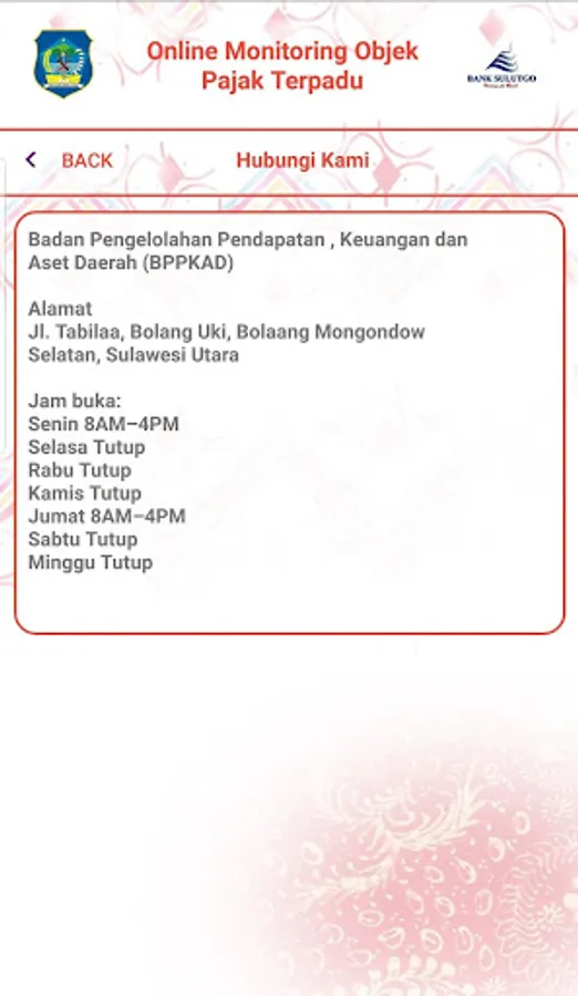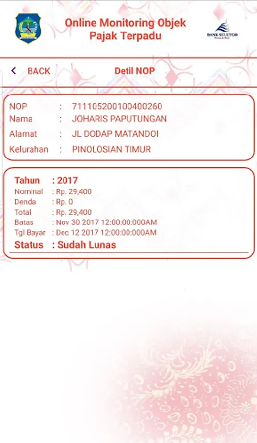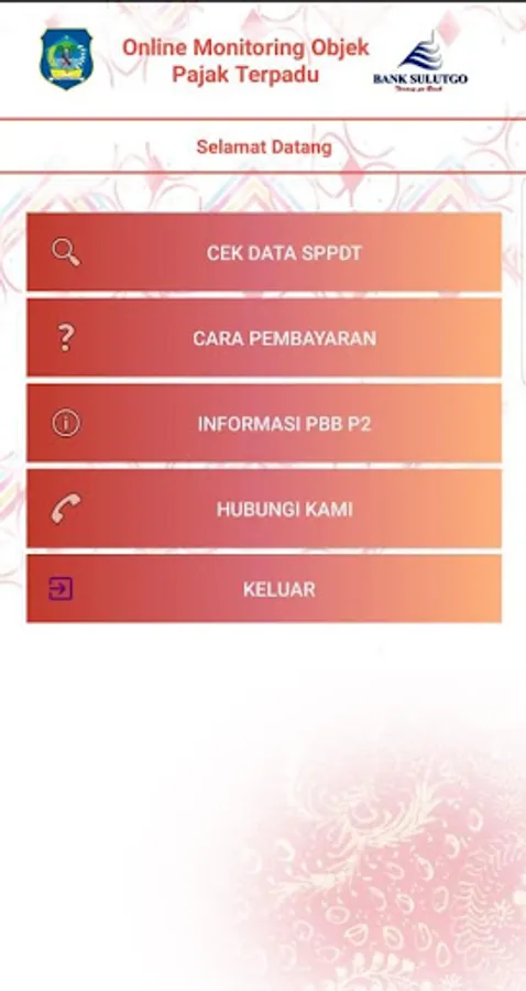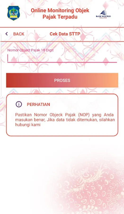 This application functions for taxpayers in the area of South Bolaang Mongondow Regency to check the Land Building Tax status of each taxpayer.