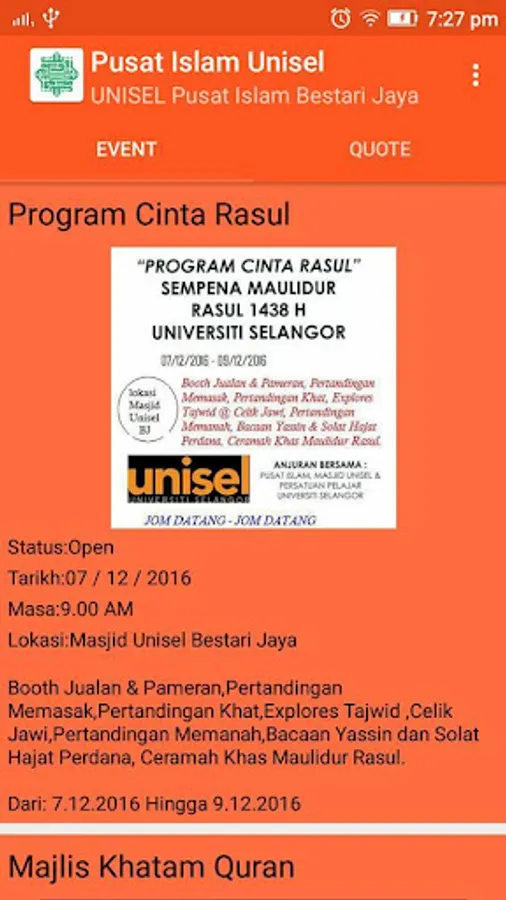 Tujuan applikasi ini adalah untuk memastikan setiap pelajar UNISEL dapat menerima informasi terkini dari Pusat Islam UNISEL.