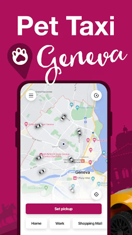 In Geneva, Switzerland, Pcab stands out as the go-to pet taxi app. Whether you're in need of transportation to the veterinarian, a grooming appointment, or a fun outing in the city, Pcab app is here to assist. Our pet friendly drivers in Geneva are trained to handle pets with care and compassion, ensuring a positive experience for both you and your furry friend.