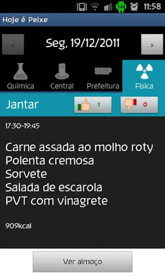 The "Today is fish!" It is an application to assist the USP community to choose the best Coseas restaurant to feed based on the available menu on the Internet.