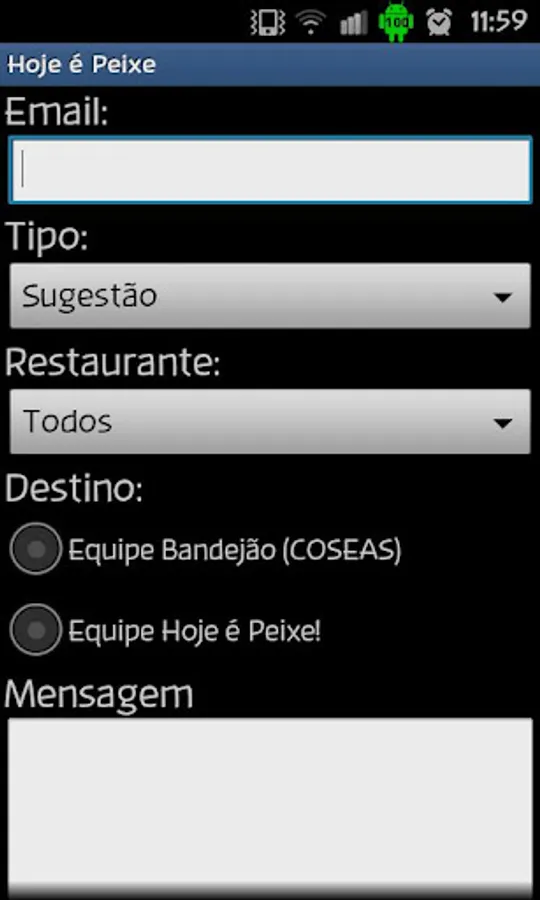 Questions, comments or suggestions: hoje.eh.peixe@gmail.com