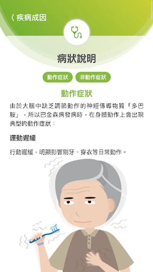 This system assists Parkinson's disease patients to understand the disease and its medicinal uses, establishes medication reminders, and records the symptoms after medication, so as to facilitate the follow-up and treatment of doctors.