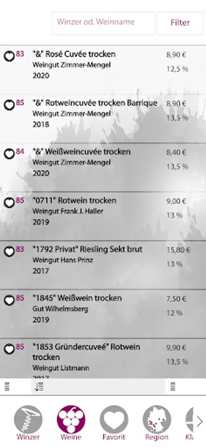 Price information, registers with bargain lists and lists of the best, an overview of the best organic winegrowers and a directory of locations round off this unique app (the book edition, bound, costs 35 euros).