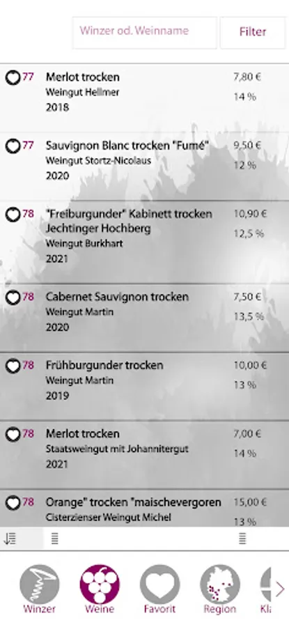 Prices, registers with lists of bargains and the best, an overview of the best organic winegrowers and a directory complete this unique app (the hardcover book edition costs EUR 39.95).