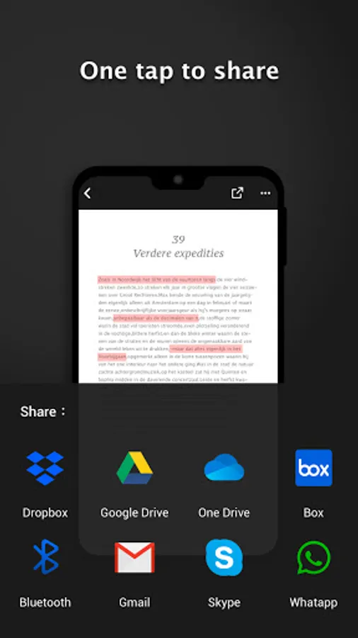 - Easily share documents in PDF or Word format with friends in a variety of ways. You can use email to quickly post to social networks, or save pictures in albums.