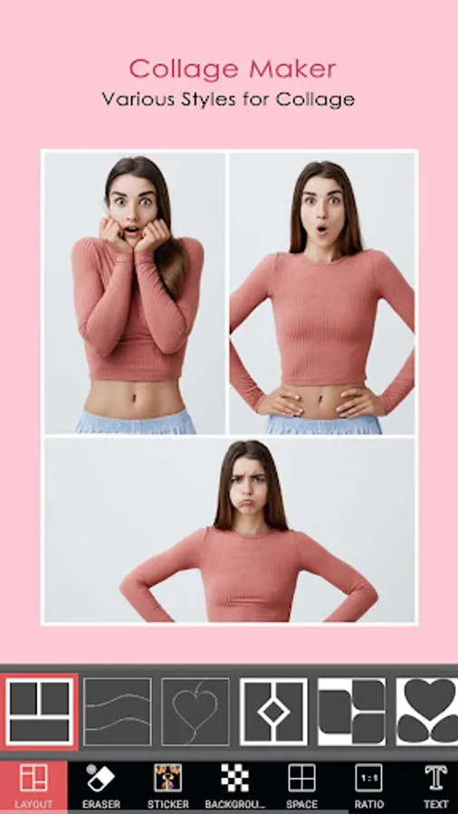Have the best collage photo maker to create amazing photo layouts, backgrounds, grids, text with frames, different texts. The app lets you collage multiple photos with layout frames and photo grids. It can also add emoticons to your photos with emojis, text and popular tags.