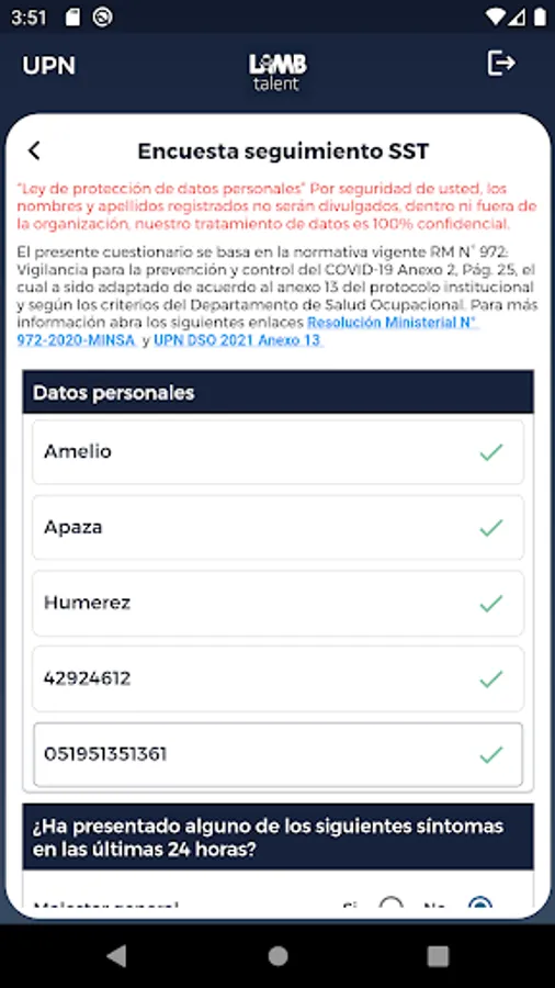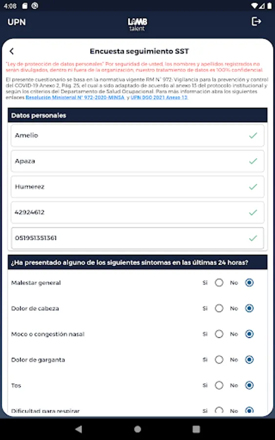 If you are a collaborator of the Adventist Church in the Northern Peruvian Union, Lamb Talent allows you to view your: