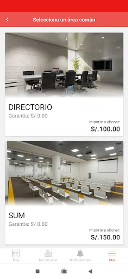 - Do you want to reserve a common area but do not know if it is available? Do not remember the cost of rent or guarantee? From anywhere with the app check the availability of common areas, as well as their rates. If one suits you, separate it immediately from your cell phone.