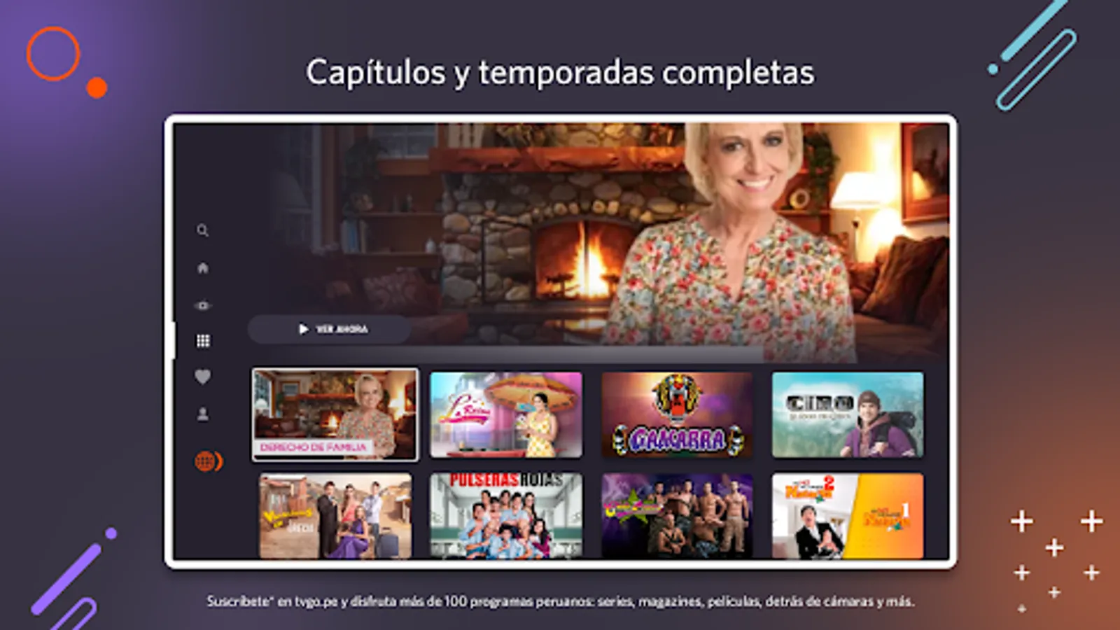 By downloading the application you can enjoy more than 100 Peruvian programs including: series, soap operas, magazines, newscasts, exclusive behind-the-scenes, and much more.