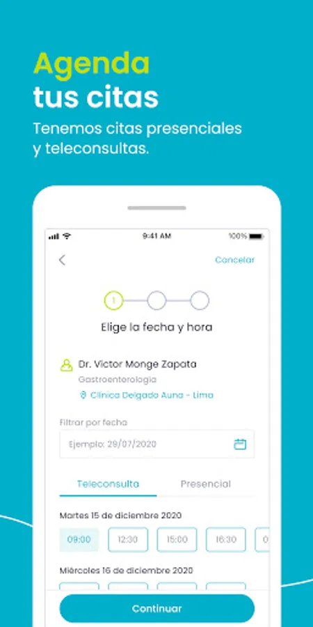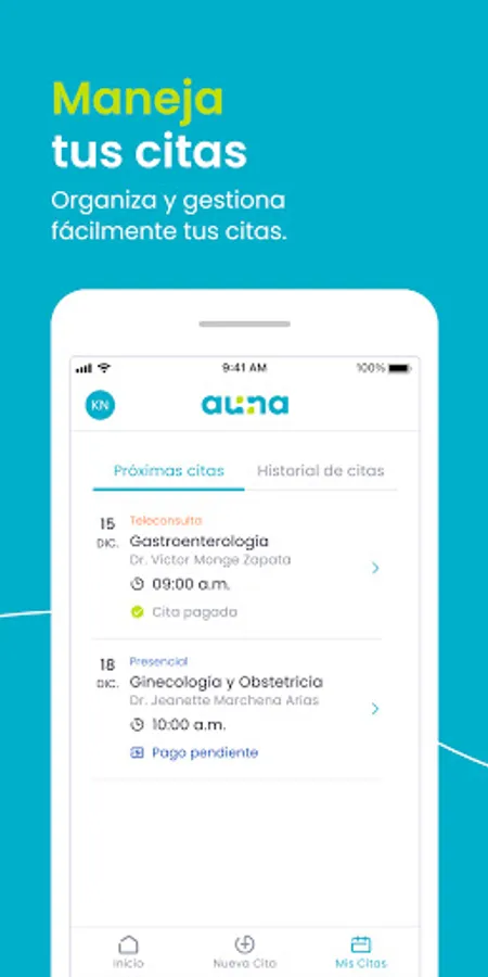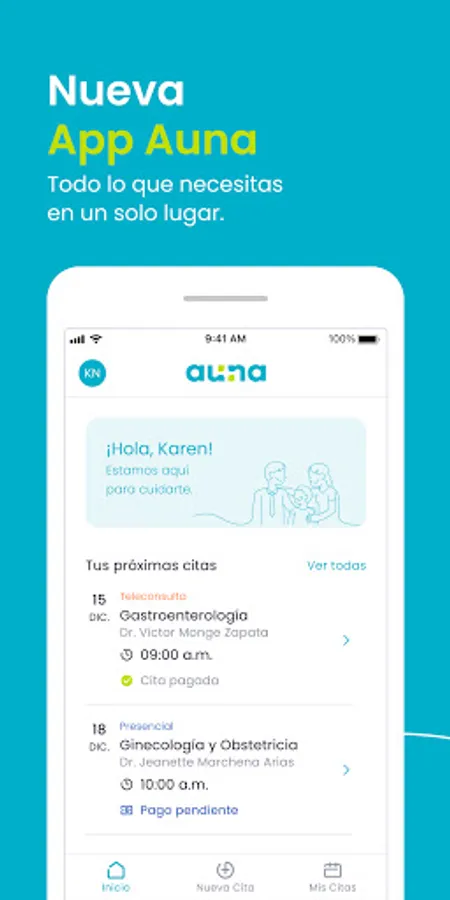 - Schedule your Auna medical appointment (face-to-face appointments and teleconsultations) with specialists from our Auna Clinics.
