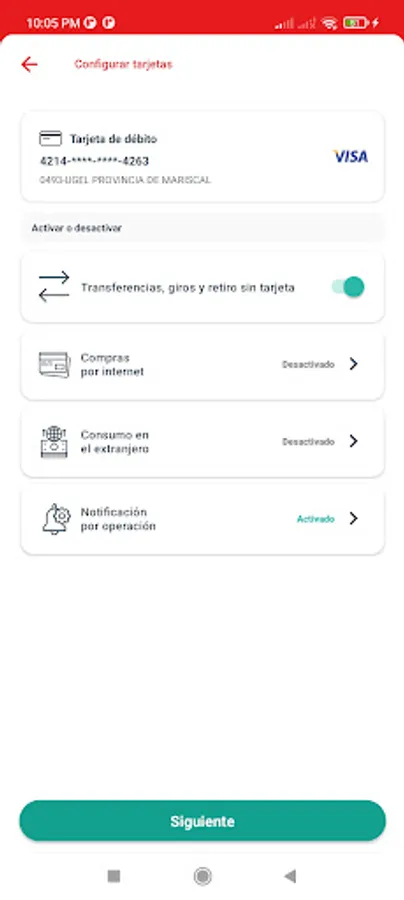 - Activate or deactivate services associated with your Multired Global Debit Visa card such as: Transfers, money orders and withdrawal without a card; Online shopping; Consumption abroad and notifications by operation.