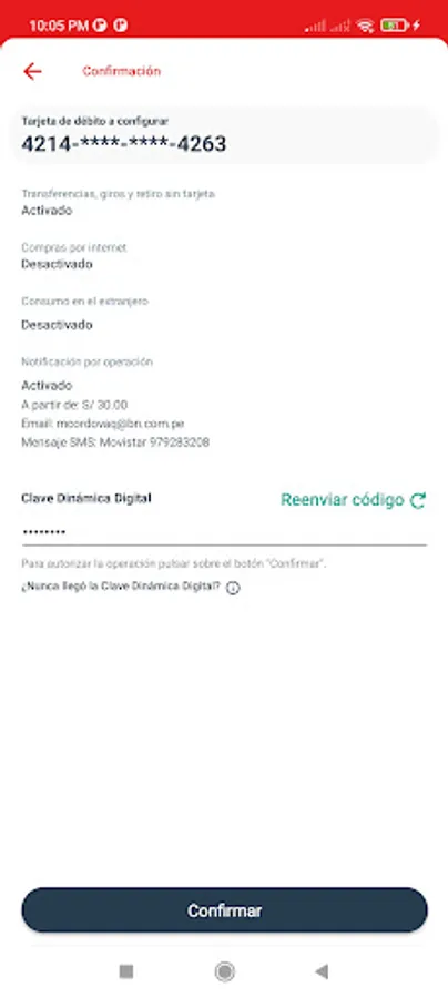 - Transfer funds to other accounts of the same Banco de la Nación.