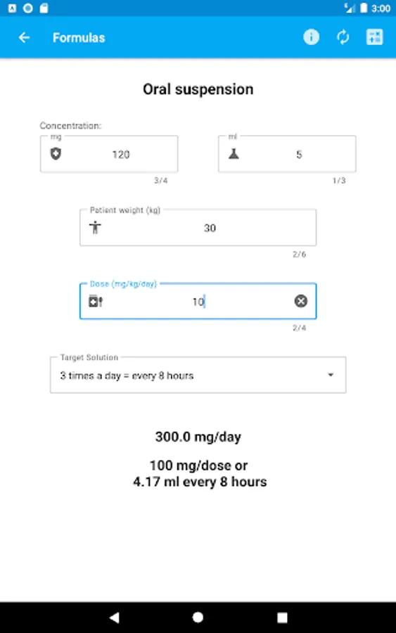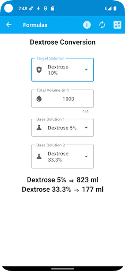 - Calculation of infusion rate, infusion time, and volume to be infused.