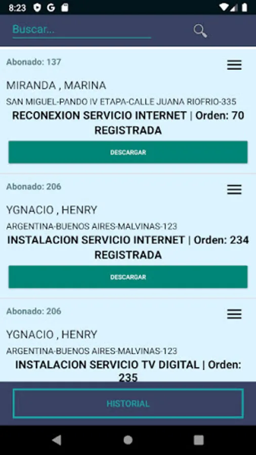 Application for the exclusive use of the technical staff of the clients of the Scord web system (Intranet).