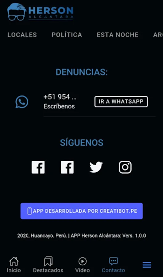 The renowned journalist Herson Alcántara, host of the program Esta Noche con Herson on Cadena TV Huancayo, presents his mobile APP that will allow 24/7 access to news from the Junín region and its provinces.