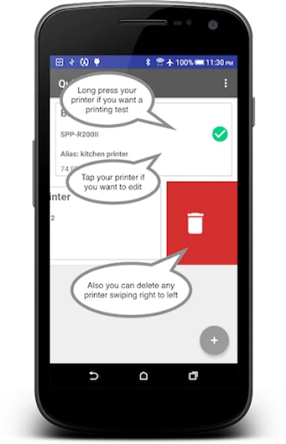 'Quick printer' is an Android application that allows you to add and configure receipt printers (ESC compatible printers) through different connection types: