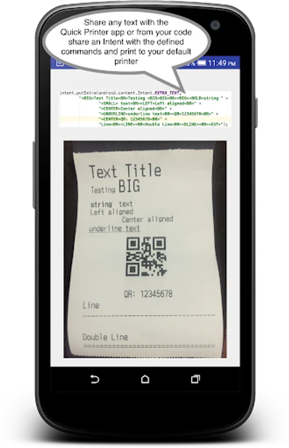 Supports multiple commands like: bold, underline, big text, cut paper, qr code (on supported printers), open cash drawer, etc.