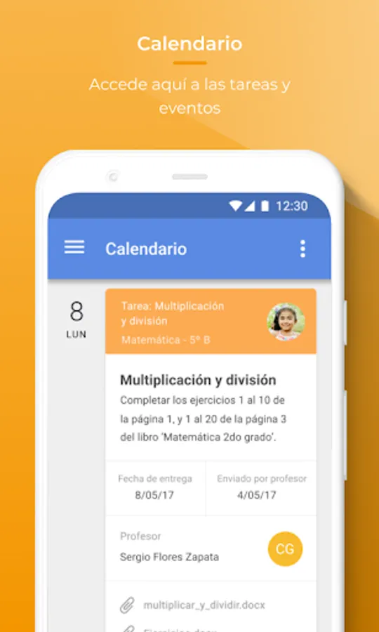 Displays tasks and events on a calendar by day, week or month, and fíltralas per student.