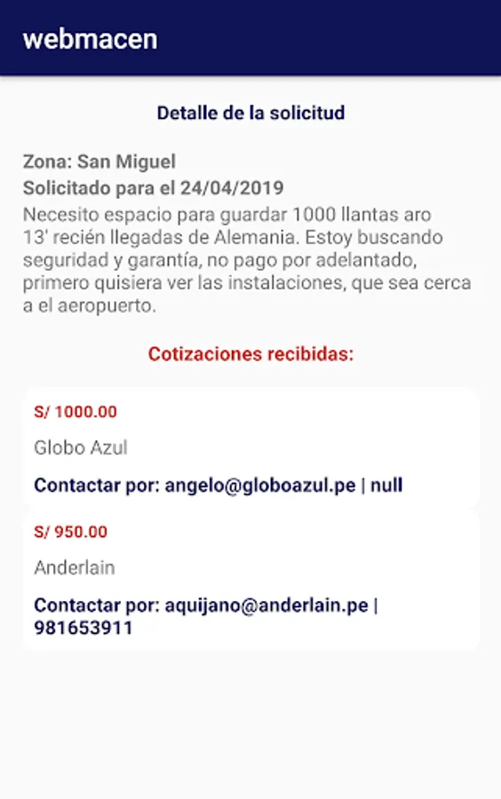 WEBMACEN is a platform that allows companies to locate warehouses available throughout metropolitan Lima and Callao so that they can store their containers in a fast and economical way.