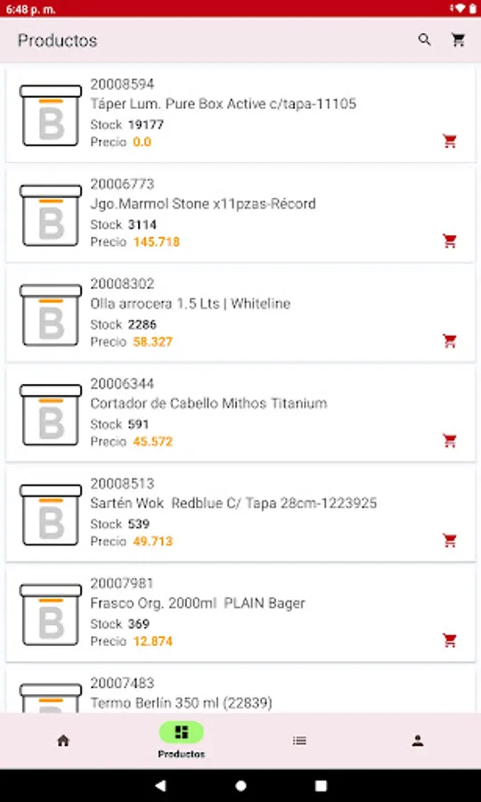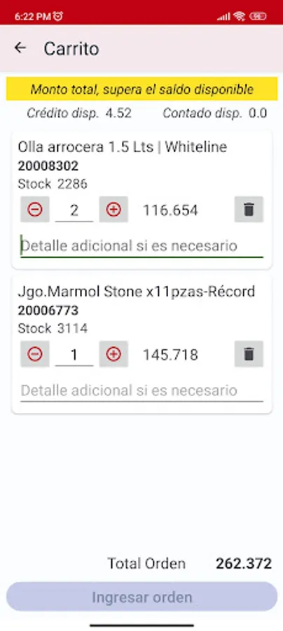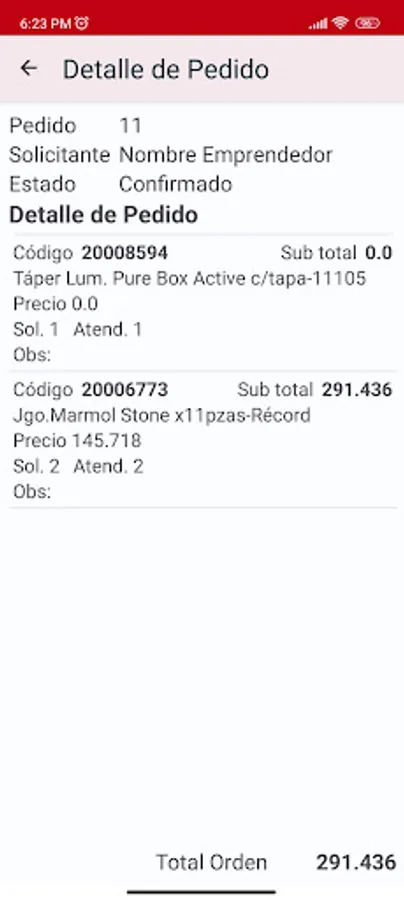 The application allows the entry of orders or orders for products available in the application or a catalog provided to users, previously evaluated by Mercado Express.