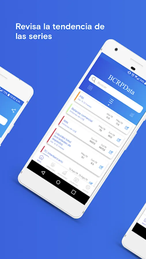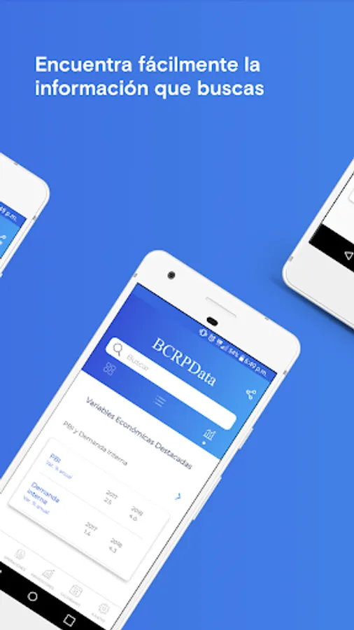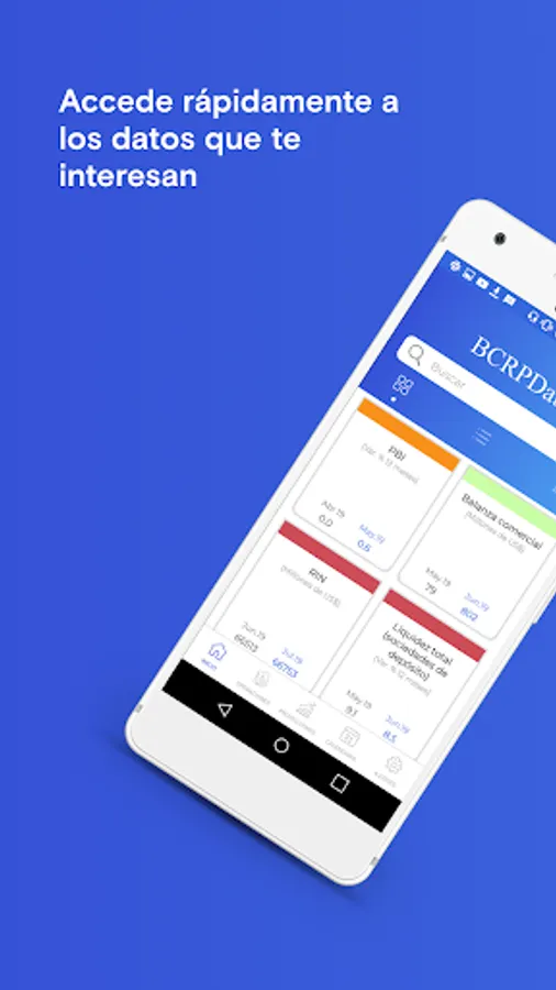 The BCRPData application provides statistical information on more than 200 macroeconomic statistical series and BCRP projections presented in the Inflation Report. The application allows adding the most consulted series to the initial screen. The application presents a search engine and series ordered by categories and economic variables, which allows easy navigation. The application shows historical information in table and chart format.