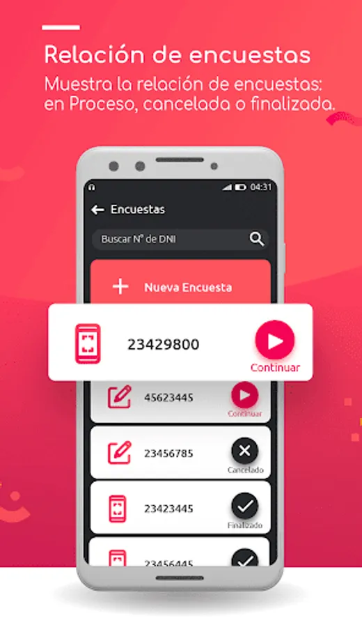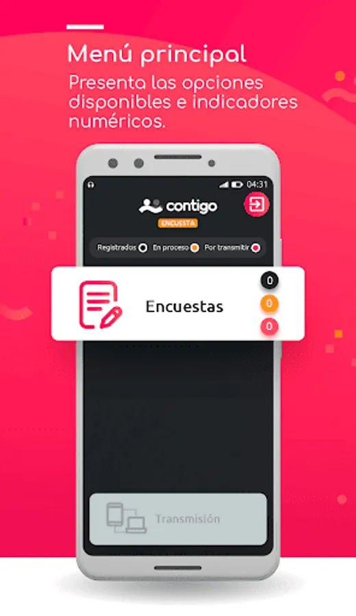 The "CONTIGO Survey" application allows you to carry out field work to update the information of the users of the "CONTIGO-MIDIS Program", through the presentation of the complete flow of the "CONTIGO Questionnaire".