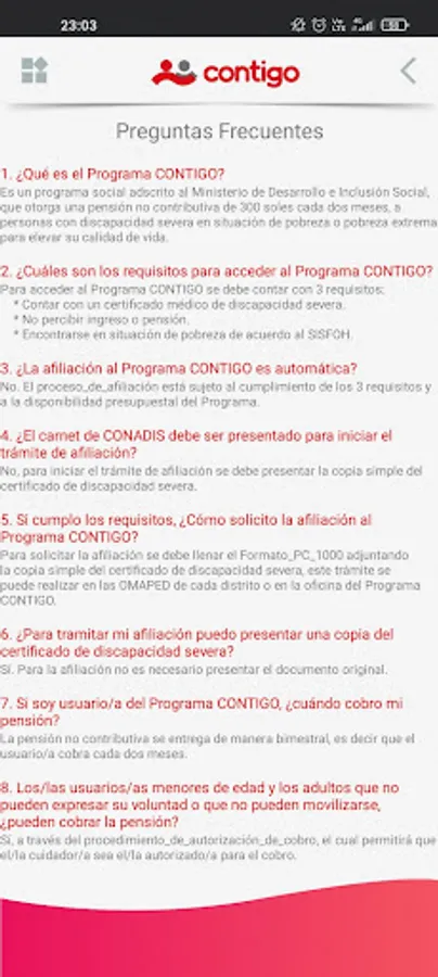 The CONTIGO Program grants a non-contributory pension to people with severe disabilities living in poverty, progressively throughout the national territory, in order to contribute to the improvement of the quality of life.
