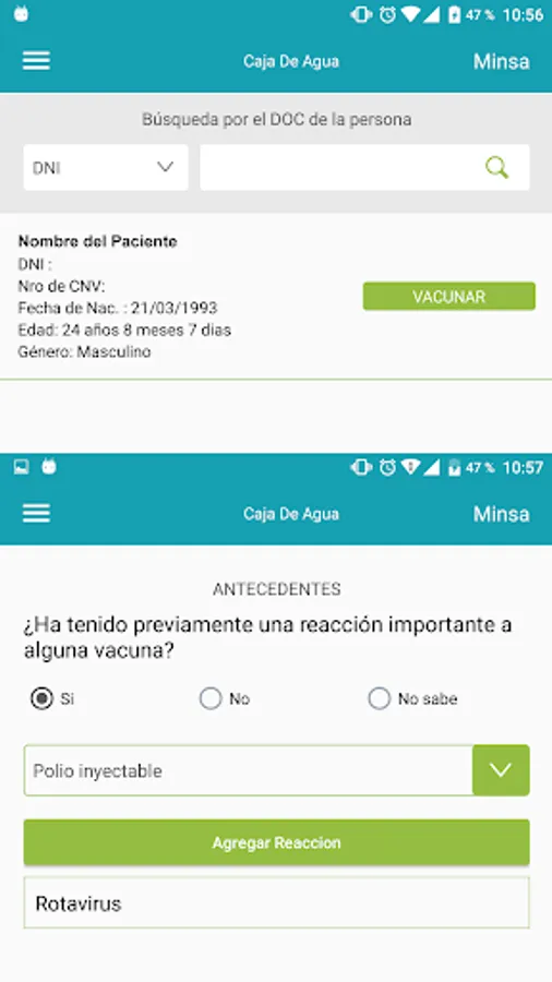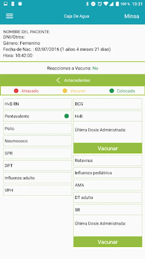 This component is intended to improve the quality of care for patients; since the vaccination process will be carried out effectively and efficiently, reducing waiting times for both healthcare professionals and patients.