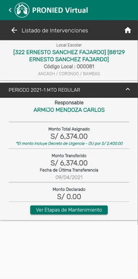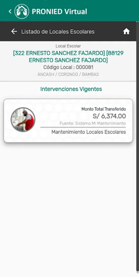Application that allows viewing the services of the National Program of Educational Infrastructure