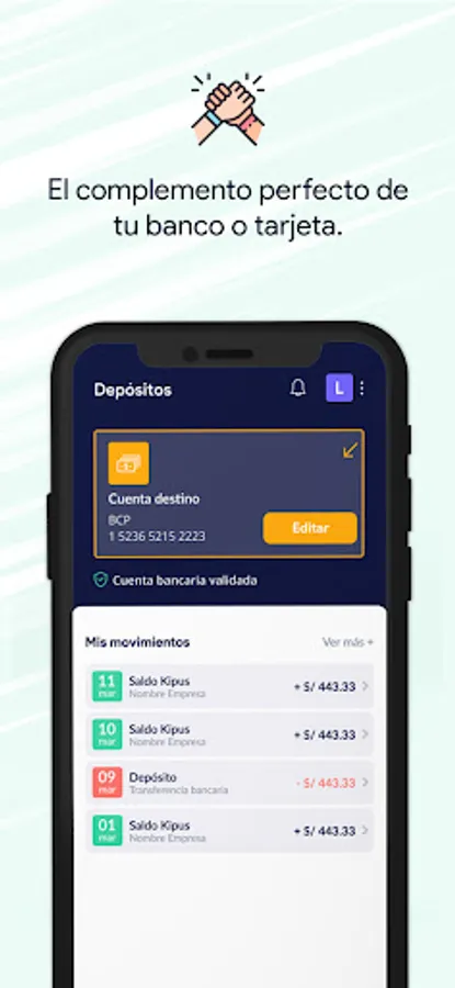 Many companies already trust Kipus to deliver money safely and 100% digitally, our commitment is to give you the total security that the money will be delivered to the corresponding person, all this thanks to our biometric authentication and match flows with bank accounts that ensure the identity of the beneficiary. So you just have to download the App, create an account with your official document and cell phone number to start enjoying the experience of being part of Kipus.