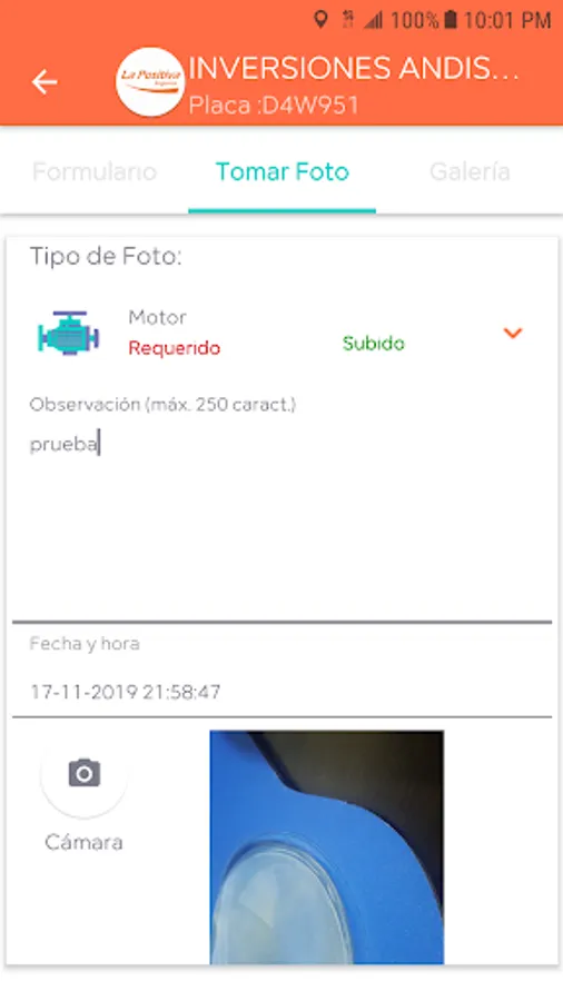 Application for the exclusive use of Inspectors of La Positiva - Brokers.